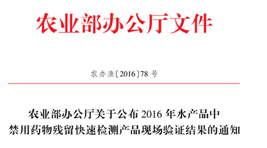 農業部于2016年12月8日發布(bu)了農漁辦[2016]78號文件,公(gong)布(bu)了硝基(ji)呋喃類代謝物快檢(jian)(jian)產(chan)品(pin)的現(xian)場驗(yan)證(zheng)結果。參照評價標(biao)準,我司(si)參與驗(yan)證(zheng)的呋喃它酮代謝物快速(su)檢(jian)(jian)測(ce)卡等4種快檢(jian)(jian)產(chan)品(pin)均符合要求(qiu)。