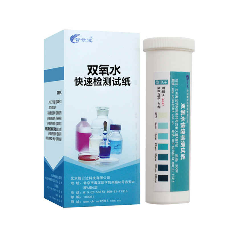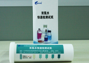 利用(yong)雙氧水與(yu)試紙(zhi)上(shang)的(de)藥劑發生顯色(se)反應,試紙(zhi)的(de)顏(yan)色(se)變化反應出食品(pin)中雙氧水的(de)含(han)量(liang)。