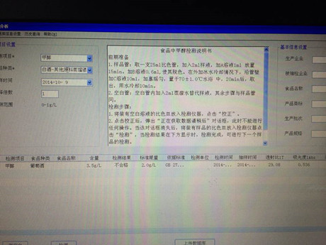 3、放入PCS食品(pin)安(an)全快速(su)檢測(ce)(ce)儀中檢測(ce)(ce),檢測(ce)(ce)結果,甲醇含量(liang)為3.5g/L,大于國(guo)家(jia)標(biao)準400mg/L.